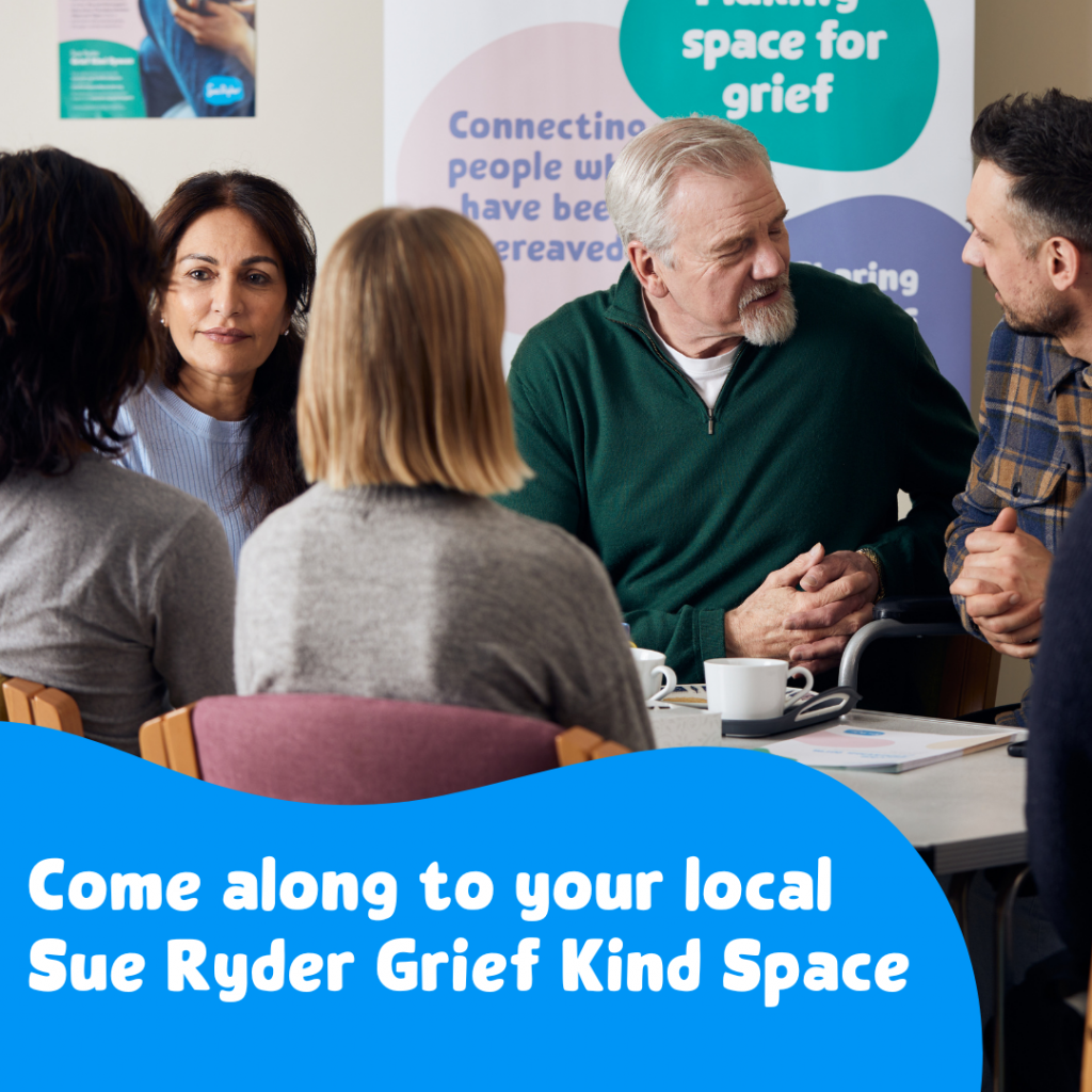 Sue Ryder Grief Kind Spaces are informal community drop-ins, providing an opportunity for people